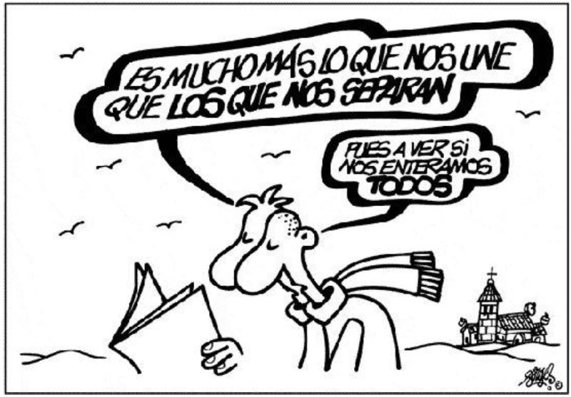 Para rematar, un guiño, mirade a viñeta que adorna a portada do propio Plan de Convivencia do CEIP Ramón Mª del Valle Inclán. Forges ten razón, pero igual poderíamos empezar uníndonos baixo un tellado.